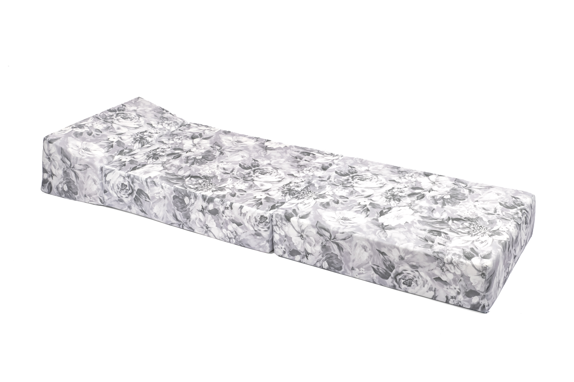 Tehokas ja käytännöllinen kolmiosainen kokoontaitettava nojatuolisänky Trend , jonka täytteenä on vaahtomuovipalat ja päällisenä verhoilukangas (päällinen irrotettavissa vetoketjulla).