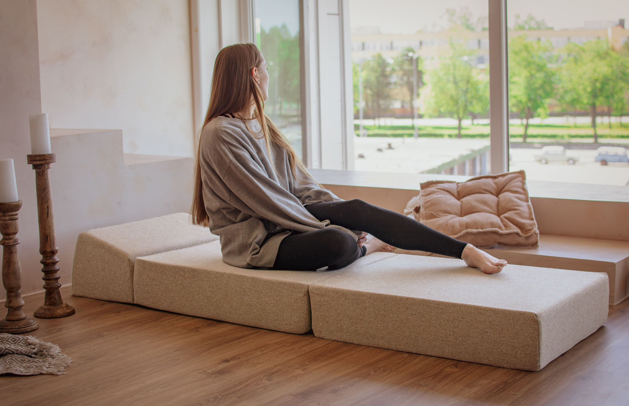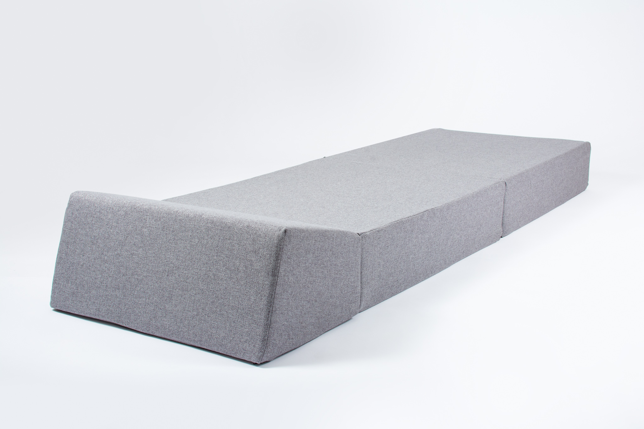 Tehokas ja käytännöllinen kolmiosainen kokoontaitettava nojatuolisänky Trend , jonka täytteenä on vaahtomuovipalikat ja päällisenä verhoilukangas (päällinen irrotettavissa vetoketjulla).