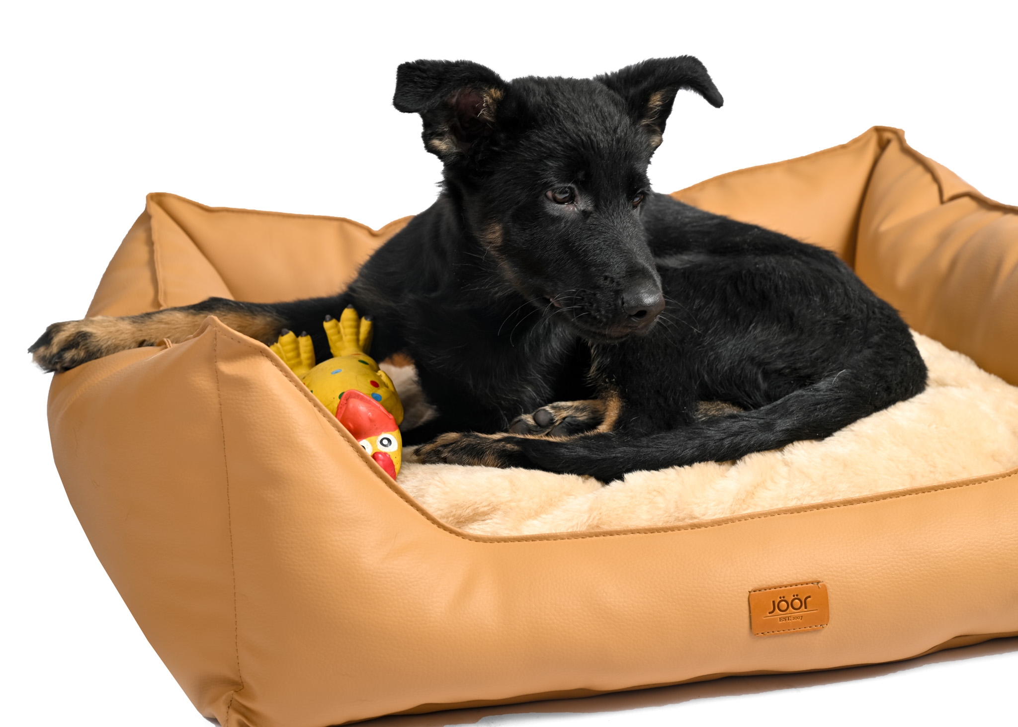 Pesän reunat on valmistettu keinonahasta ja täytetty vanulla . Tyyny on toinen puoli pehmeää tekoturkista – toinen puoli on tekonahkaa ja täytetty vanulla. Tyyny on irrotettava.